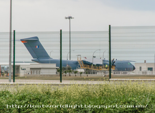 Tarom con librea retro, hoy en SVQ y un B757 de Titan con un A400M entrando viento en cola izquierda al fondo